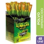 Chicle con sabor a revolcón en presentación de display con 48 unidades.